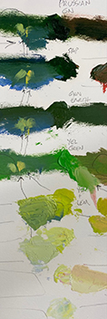 How to think about greens and the elements that affect the color will be a solid foundation that we will build upon in this day of study. Mixing work boards to help diagram the concepts that we will be discussing will greatly help you comprehend how to think and how to manage greens. Palette progressions, mixing exercises, and basic organization of your greens will help you know how and why you go to certain baselines in various situations. Much time will be allowed for individual discussion and review in a systematic rotation.
