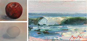 This fun and informative one-day workshop will cover the basic principles of oil painting and get you painting simple and easy to understand objects in a short time. The idea of this workshop is to get you comfortable with the process of painting while teaching you how to paint dynamic and exciting paintings. The class includes interesting and memorable discussions on all the basic elements of painting including, composition, massing, building form, light and shadow – and depending on your own style, knowing when a work is finished (learning how to not overwork your painting). Douglas delivers sound principles of painting that are an incredible foundation for your painting, and whether a person who has never ever picked up a brush, a relatively new painter or a more accomplished painter looking for some strong points to review, it will make sense. After the brief morning intro, a very hands-on approach to the class, gets students organized and preparing to paint. Students will learn how to set up their palette with the basic colors and understand why this is helpful. Douglas will overview his palette and concepts that his work entails and do a subsequent demonstration painting of an egg, an apple and a wave in the afternoon. Douglas’ demo will be slow and you can follow along as he guides you step by step. There is nothing to be afraid of or self conscious of and Douglas will get you through all the tricky parts and you will have fun. Students will work in their own style/technique so that the finished work is their own. Plan to bring notebook/sketchbook and enjoy all the demos along with some great stories to help you remember these principles that are the foundation of Douglas’ teaching. Douglas’ Biography Class supply list: Or you can bring these supplies... liquin Please prime all canvas with a thin coat of thinned down Cad Red light and white to make a pink or light red tone on canvas (acrylic is fine to tone canvas). Douglas has a “suitcase of supplies” he brings along, it includes some recommended books, and some supplies in case a few students need a few items that are forgotten. Class/Tentative Outline: 1st hour: Welcome/Overview of Class & Terms. 2nd hour: Review Supplies and how to set up and get organized to paint, setting up the palette, and how to get started. Lunch: Brown bag or run to market close by to pick up a sandwich. Entire Afternoon: Paint in studio.