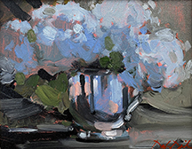 After the brief morning intro, a very hands-on approach to the class, gets students mixing colors and preparing to paint. Students will work in their own style/technique so that the finished work is their own. Douglas will overview his palette and concepts that his work entails. Students will mix paints and learn to mix basic strings of color to help comprehend how this preparation makes the painting process a little simpler and gets a working understanding of the value/strings of color. Students will work from wonderful photos of Hydrangeas that Douglas provides.