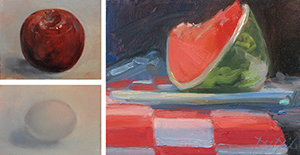Students will work in their own style/technique so that the finished work is their own. Students will paint simple still lifes which usually includes items like apples, watermelon, eggs and really common and fun things. You will also paint from a photo so you get the idea of what painting “en plein air/out of doors” is like, usually we paint a palm tree, a beach and sometimes a sailboat. Depending on the skill level of each student, students are able to grow and develop at a rate that is to their comfort. Plan to produce a few small paintings and possibly one larger painting. Plan to bring notebook/sketchbook and enjoy all the demos along with some great stories to help you remember these principles that are the foundation of Douglas’ teaching. Douglas’ Biography Class supply list: Or you can bring these supplies... Oils - Utrecht (or your favorite brand) Cad. Red Light, Aliz Crim., Phthalo Blue, Phthalo Green, Ultram. Blue, Ultram. Violet, Lemon Yellow, Yellow Green, Green Earth Hue, Prussian Green, Yellow Ochre, Cad. Orange, Cad. Red Medium, Cad. Yellow Light, Ivory Black, “Permalba” White Paper Towels Douglas has a “suitcase of supplies” he brings along, it includes some recommended books, and some supplies in case a few students need a few items that are forgotten. Class/Tentative Outline: Day 1 “Simple steps” Day 2 “Review terms” Day 3 “Putting it all together”
