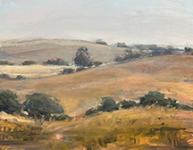 Capturing the golden hills, meadow and grasslands, distant treelines and Coastal vistas will be the focus of this oil painting workshop. The class will yield several paintings over a 2 day period. As reference to paint from, Douglas will provide photos from places such as Stanford Dish Nature Trail, Badlands Nature Preserve and Pearson-Arastradero Preserve, East Cliff and Greyhound Rock Beach and Coastal Access near Santa Cruz. Class will cover the basic principles of oil painting with regard to landscape painting. Whether just starting out or a seasoned painter, sound principles are a key foundation. Discussions and lectures on composition, massing, building form, light and shadow, developing atmospheric distance and depending on your own style, knowing when a work is finished (learning how to not overwork your painting). Students will work in their own style/technique so that the finished work is their own. Douglas will overview his palette and concepts his work entails. Students will work on studies and the emphasis will be on capturing the time of day, atmosphere and geographical elements in a quick concise way based on the covered principles. Getting the right values while getting the California colors correct will be a major focus of this workshop. Depending on the skill level of each student, students are able to grow and develop at a rate that is to their comfort. Demos and individual discussions/instruction will help each student to begin to reach the preliminary goals they are striving to meet. Douglas will be able to assist students with mixing and will review individual students a few times during each session or set up. Plan to produce several studies and at least one or two larger more finished paintings, depending on skill level. Plan to bring notebook/sketchbook and enjoy some demos along with some great stories to help you remember these principles that are the foundation of Douglas’ teaching. A small informal group show on easels in our class will end the class on a high note as we share our accomplishments in this condensed time of study. Brown bag lunch is the best way to keep the momentum and flow going over the 2 days of the workshop.