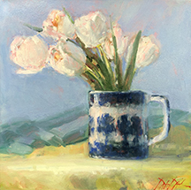 After the brief morning intro, a very hands-on approach to the class, gets students mixing colors and preparing to paint. Students will work in their own style/technique so that the finished work is their own. Douglas will overview his palette and concepts that his work entails. Students will mix paints and learn to mix basic strings of color to help comprehend how this preparation makes the painting process a little simpler and gets a working understanding of the value/strings of color. Students will work from photos Douglas provides that include Classic Florals - Tulips, Peonies, Hydrangea and some other fun things like donuts, bananas and maybe some grapefruit.