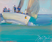 Class will cover the basic principles of oil painting with regard to painting boats. After the basics are covered, we will start by painting some basic boats and move up to more complicated sailboats throughout the next couple of days. For those who have studied with Douglas before, this overview of principles is always a good review, and no matter what the subject, these principles are key, and new discussions and tips are added each season. Each day’s demo will include simple discussions on composition, massing, building form, light and shadow, near and far, capturing and developing atmospheric distance, and depending on your own style, knowing when a work is finished (learning how to not overwork your painting). Students will work in their own style/technique so that the finished work is their own. Douglas will overview his palette and concepts his work entails.